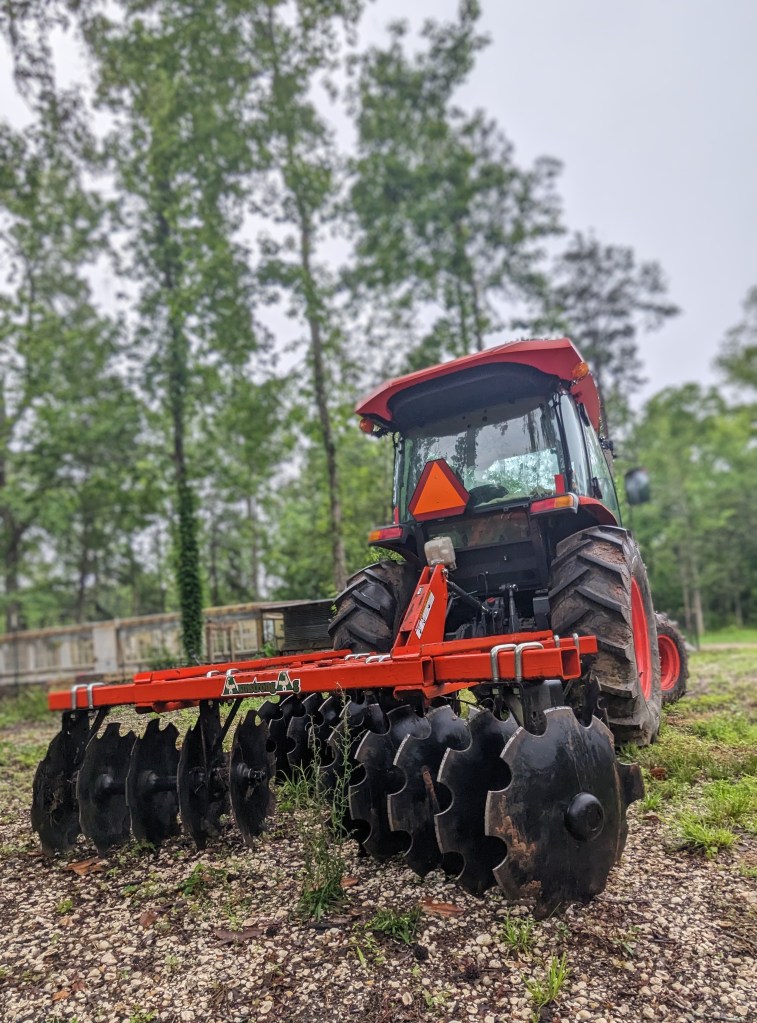 Yesterday I put the disc on the tractor to work a patch of ground in preparation to plant a small apple orchard. I’ve been preparing this spot for a year. First there was seeding with clover to break up the clay and add nitrogen. Then I mulched the entire area with cardboard, added 13 yards of topsoil, and added the chipped up wood from yaupon, small pines, and oak saplings . I piled on many, many bags of leaf litter which were donated by a neighbor who does landscape maintenance for the town of Mandeville. This recipe of biomass fermented, like a good wine, or sourdough, until it was time to disc it into the clay to make it ready for the young apples.